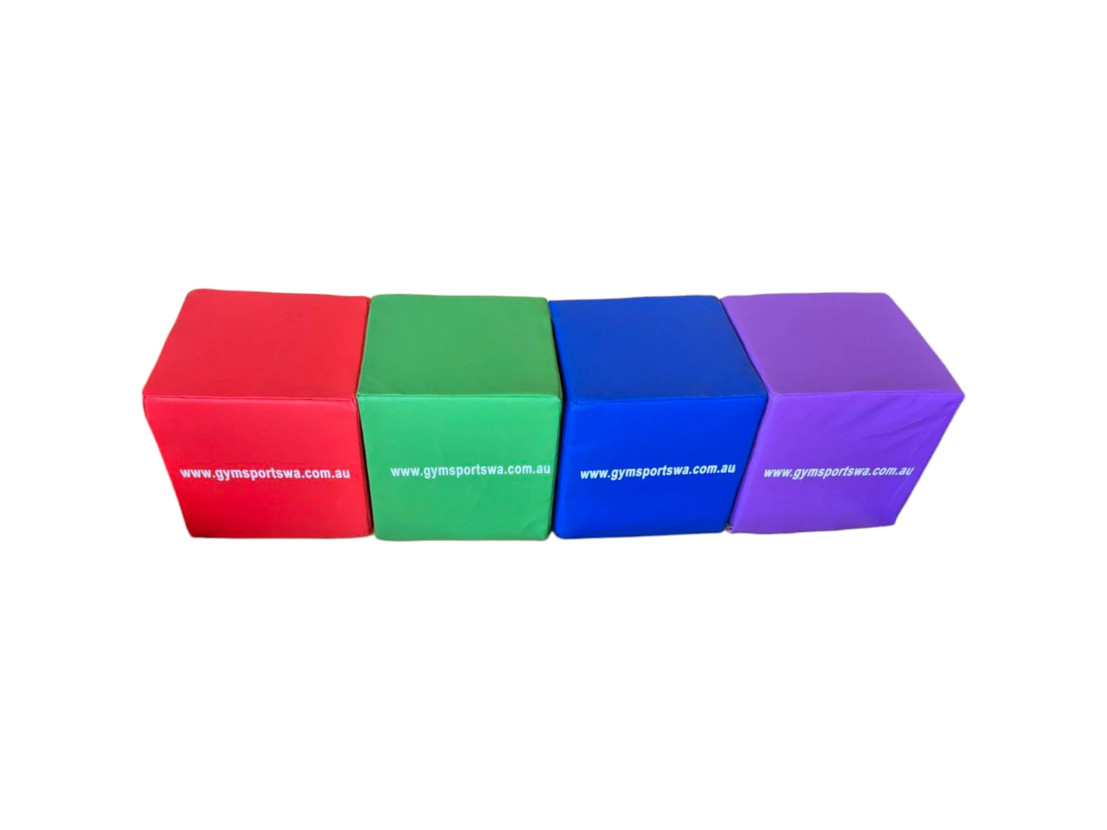 Set of 4 Cubes 30cmx30cmx30cm Compressed Foam with Zipped Vinyl Covering. Blue/Purple/Red/Green